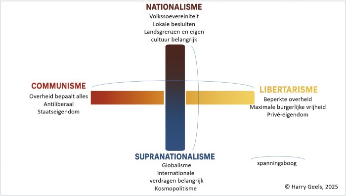 Fourthly, this approach forces us to reflect more deeply. We have to think about broader political principles, not about party leaders or populist positions. Fifthly, it frees us from the damaging and polarising left-right frame. There are not two camps, but four broad ideological directions that together form the real political landscape. Finally, self-knowledge is stimulated. Those who know their own position are less guided by populism and more by consistency.